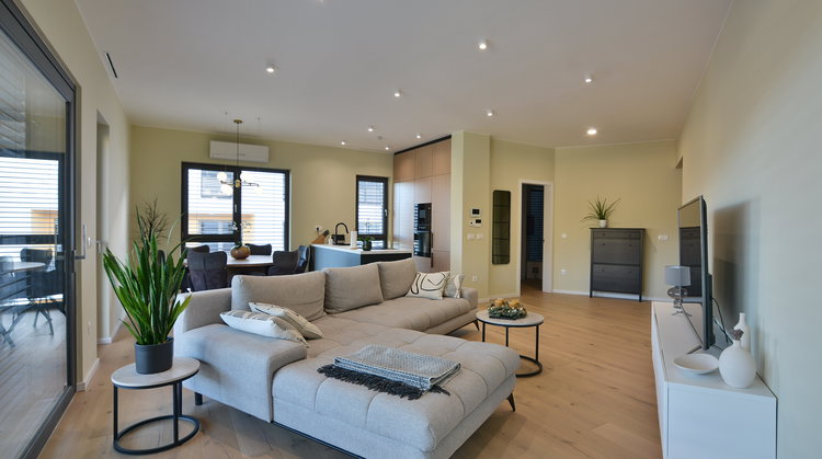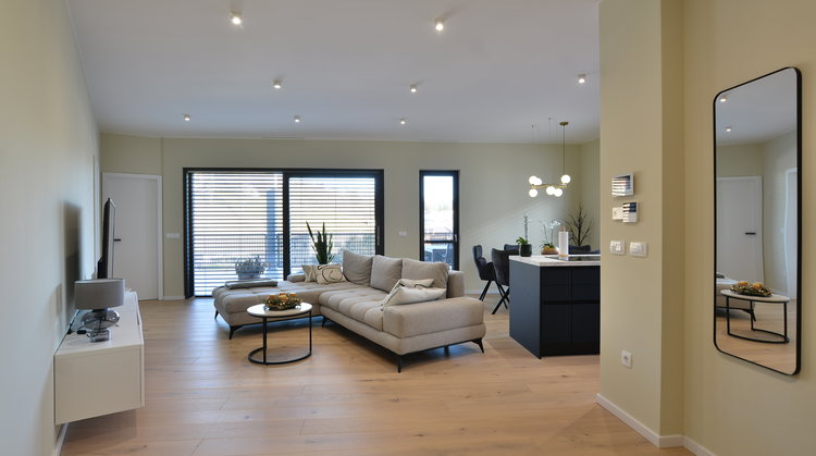 V ceni je zajeta vsa oprema v stanovanju, razen opreme v otroških sobah in dve pokriti parkirni mesti ob samem objektu.